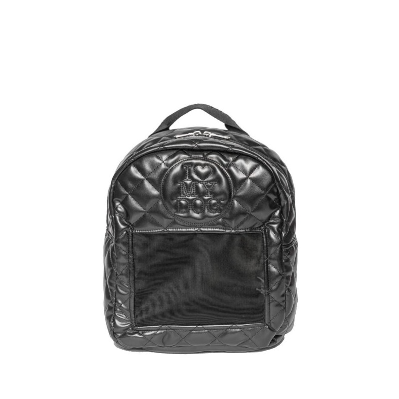 Zaino in ecopelle e denim trapuntato con logo, retina sul davanti, spallaccio regolabile. Leggero e comodo.