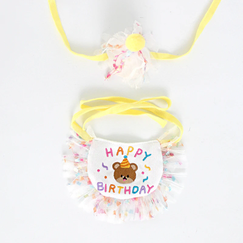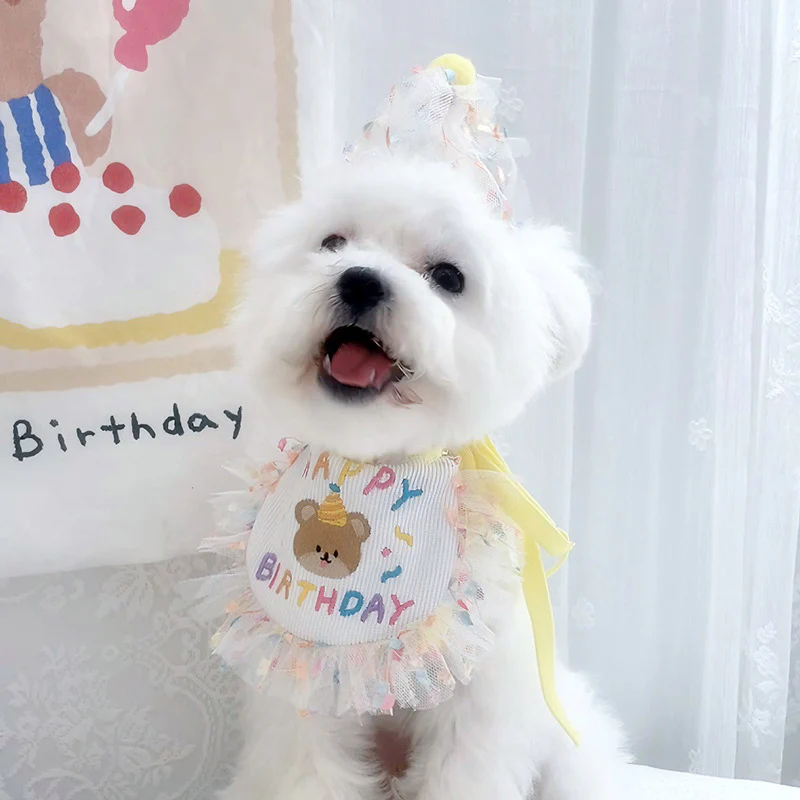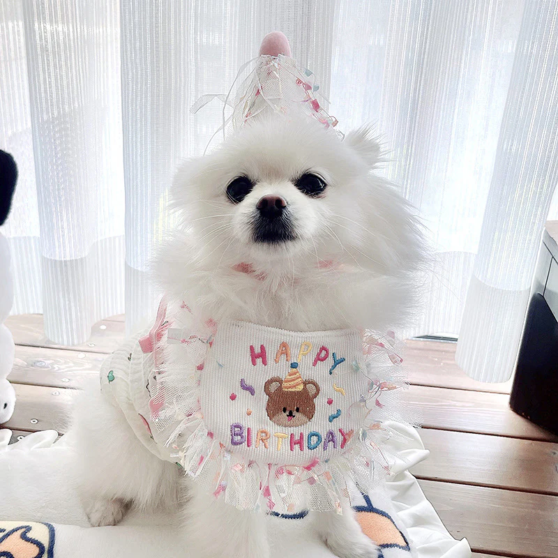 Birthday Bear Printed Dog Cat Bib&Hat Set