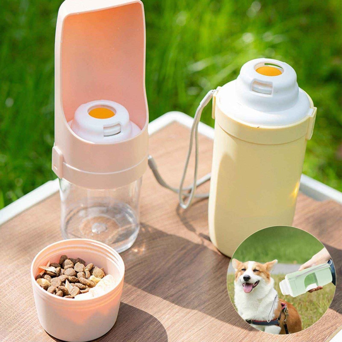 La soluzione definitiva per passeggiate, viaggi e avventure con il tuo cane! Questa borraccia innovativa combina in un unico accessorio compatto tutto ciรฒ che serve per mantenere il tuo amico a quattro zampe idratato e nutrito ovunque tu vada.