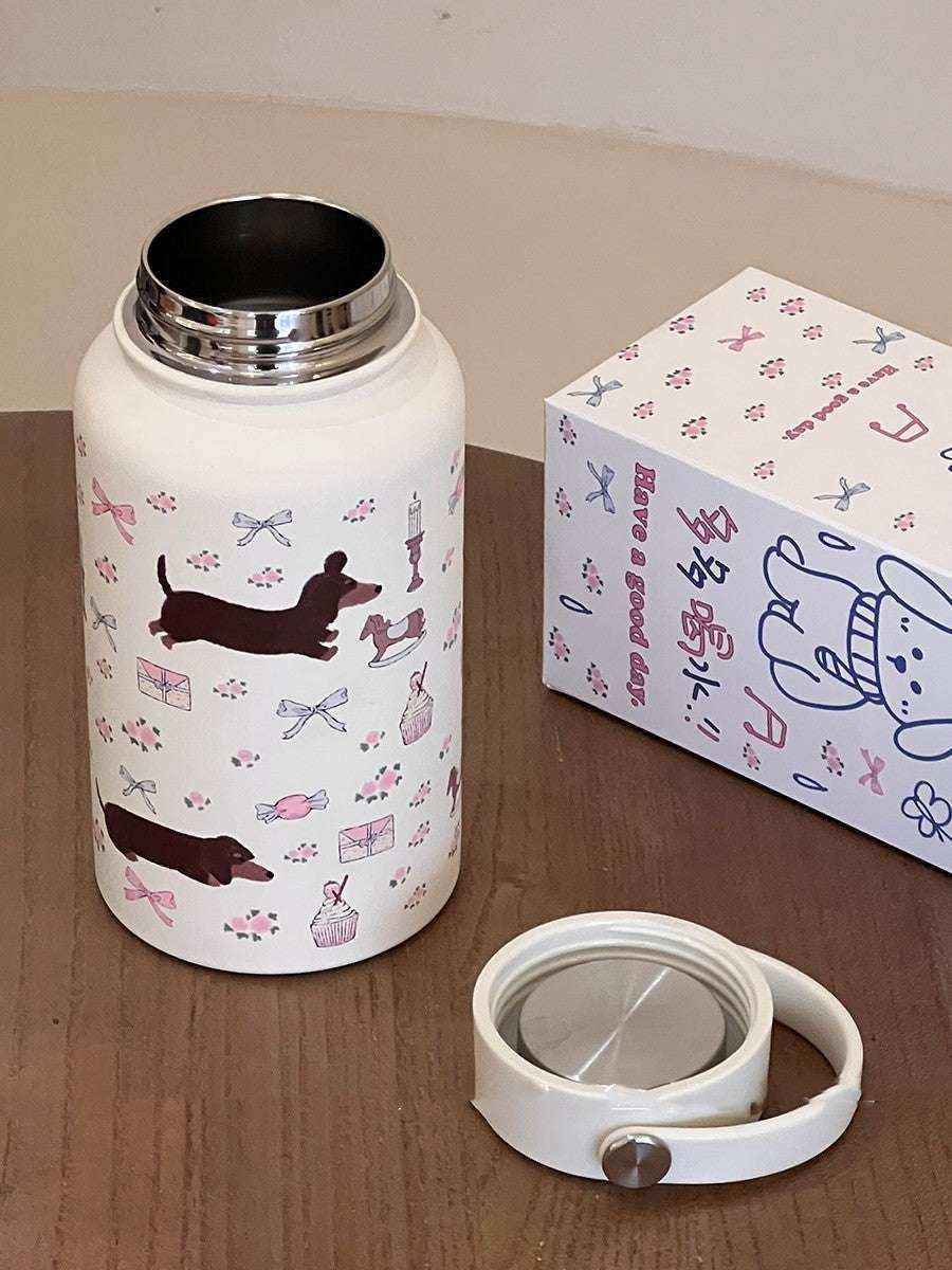 1 ร Borraccia termica con decorazione bassotto floreale