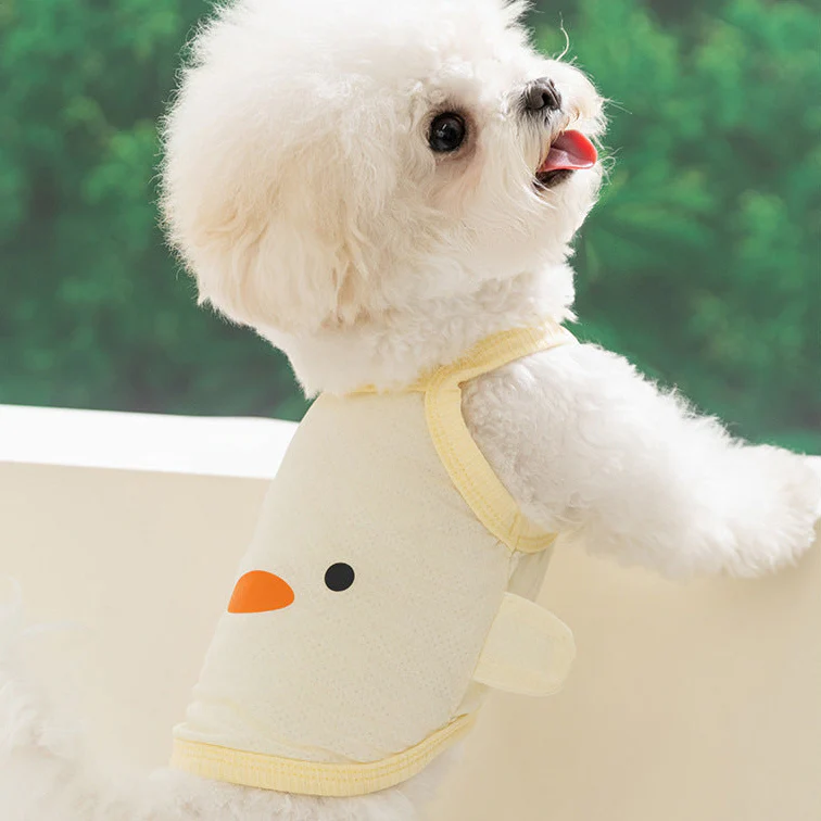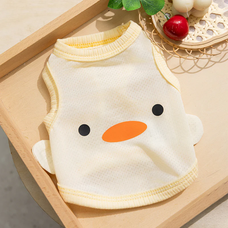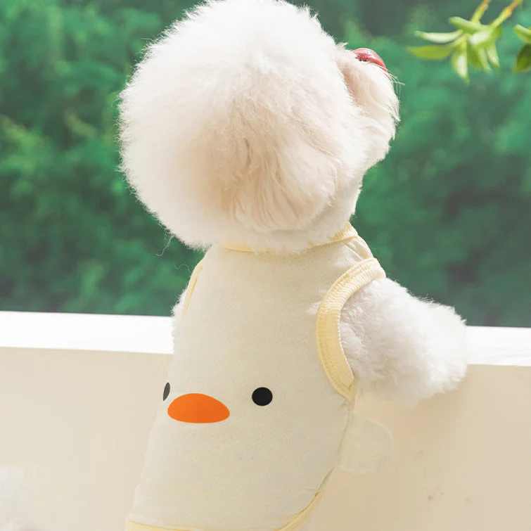 Type: Vest Style: CartoonSeason: Spring/SummerPattern: DuckColor: YellowSize: XS/S/M/L/XL/XXL Applicable breeds: Small Medium Dogs, like Yorkies ,Pug, Chihuahua, French Bulldog Package Included: Pet cloth*1 Note: It is manual measurement, there may be 1-3 cm error. And item color displayed in photos may be showing slightly different on your computer monitor since monitors are not calibrated same.