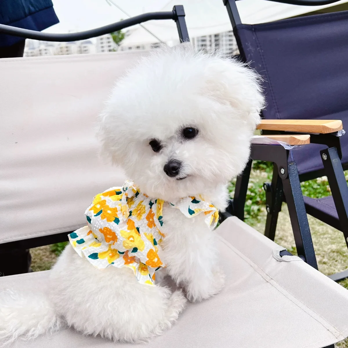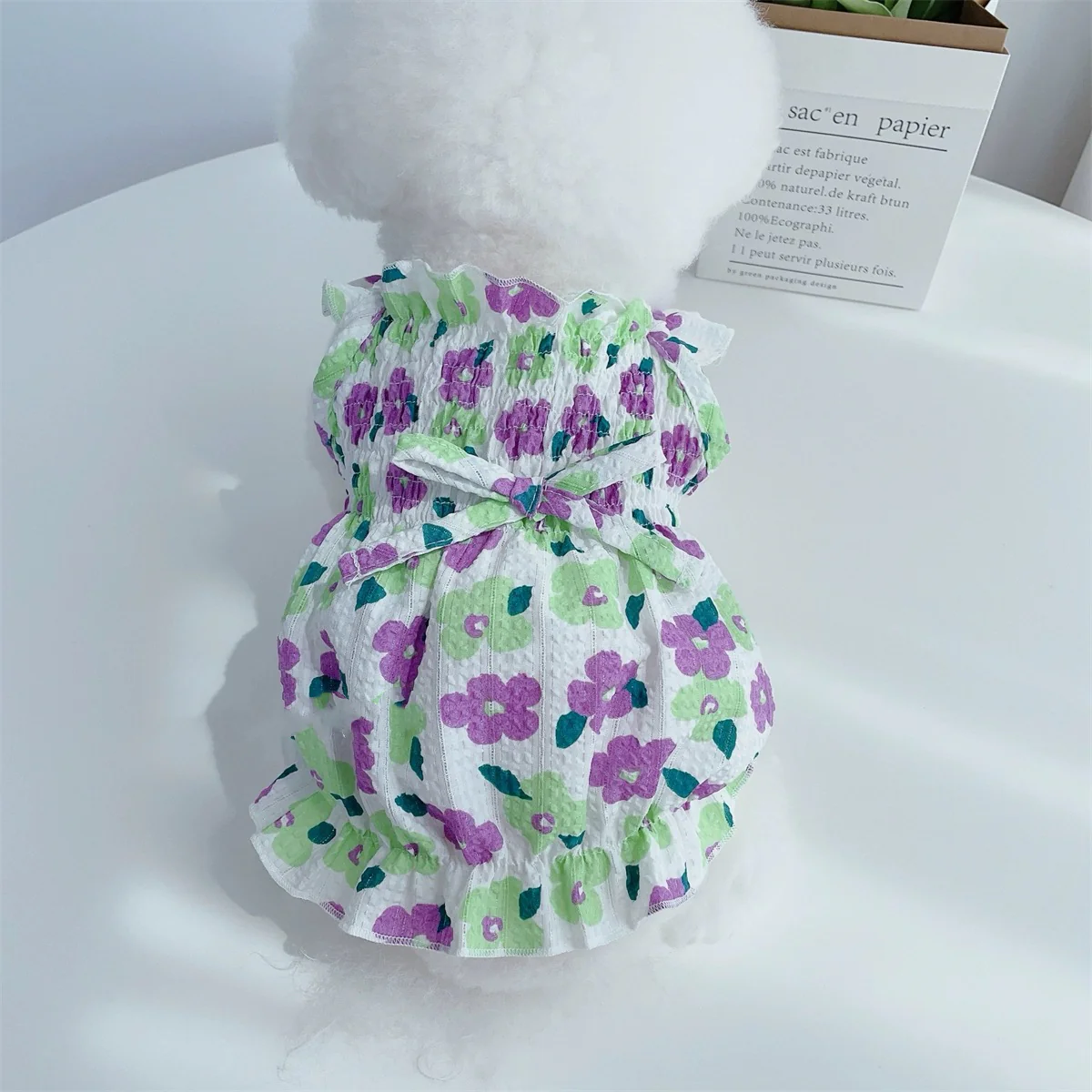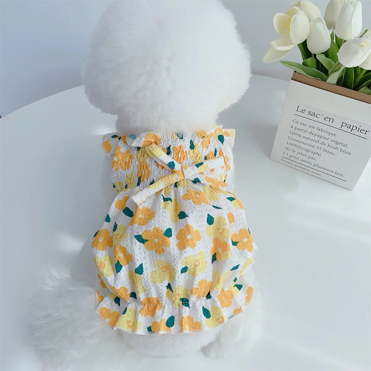 Type: Dress Style: SweetSeason: Spring/SummerPattern: FloralColor: Yellow/Green/Pink/OrangeSize: S/M/L/XL/2XL Applicable breeds: Small Medium Dogs, like Yorkies ,Pug, Chihuahua, French Bulldog Package Included: Pet cloth*1 Note: It is manual measurement, there may be 1-3 cm error. And item color displayed in photos may be showing slightly different on your computer monitor since monitors are not calibrated same.