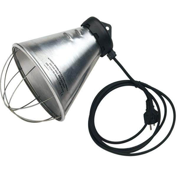 Campana porta lampada in alluminio con la spina Schuko, diametro 210mm, cavo 2,5m con griglia di protezione.