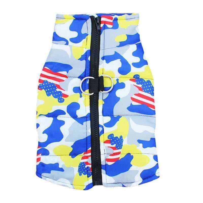 Proteggi il tuo cane dalla pioggia e dal vento con il cappottino impermeabile Toronto, un capo pratico e funzionale, ideale per cani di tutte le taglie. Disponibile in quattro colori accattivanti โ blu, rosso, camouflage e giallo โ questo cappottino รจ dotato di una comoda chiusura a zip sul dorso per una facile vestizione e di un doppio anello per il guinzaglio, garantendo sicurezza e praticitร durante le passeggiate.