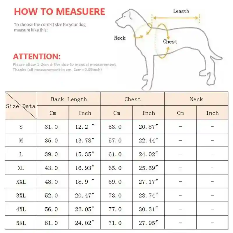 | XXL | 48 | 69 | Labrador, Golden Retriever |