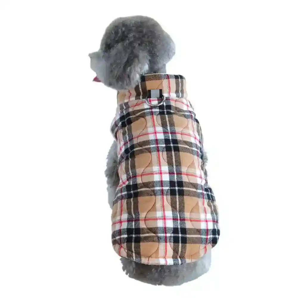 Cappottino in Tessuto Stile Tartan per Cani con Pettorina Integrata e Chiusura a Zip