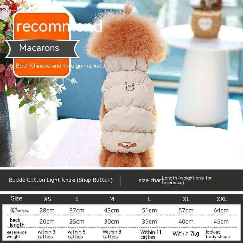 Il cappottino “Macarons” smanicato per cani di piccola taglia รจ perfetto per proteggere il tuo amico a quattro zampe durante i mesi piรน freddi. Realizzato con una morbida imbottitura in pile, tiene al caldo il tuo cane senza impedire la sua libertร di movimento. Il cappottino ha una chiusura a bottoni sul dorso, che lo rende facile da mettere e da togliere. Inoltre, presenta un anello sul dorso dove potrai agganciare il guinzaglio del tuo cane, rendendolo ideale per le passeggiate anche quando piove, grazie alla sua componente impermeabile. I colori e i motivi ispirati ai deliziosi macarons lo rendono anche un accessorio alla moda per il tuo cucciolo. Scegli la taglia giusta per il tuo cane e preparalo per affrontare al meglio le giornate piรน fredde dell’anno.