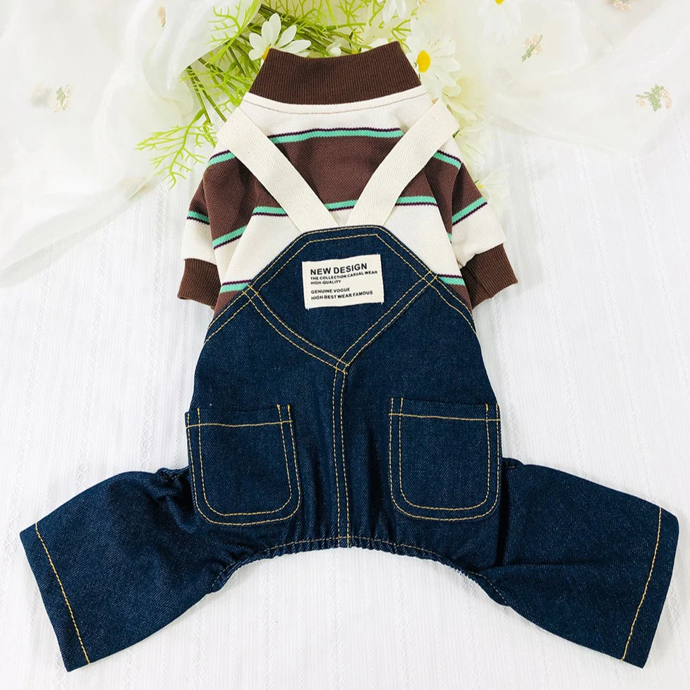 Casual Wide Striped Denim Dog Jumpsuits