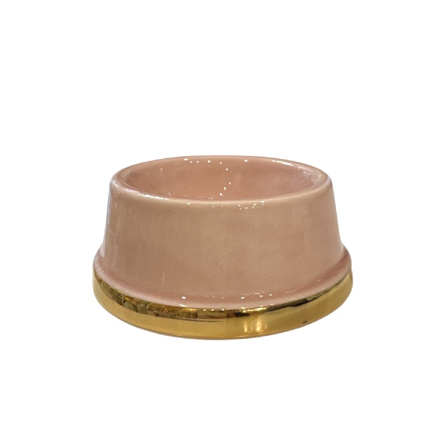 La ciotola è impreziosita con il bordo superiore smaltato oro.