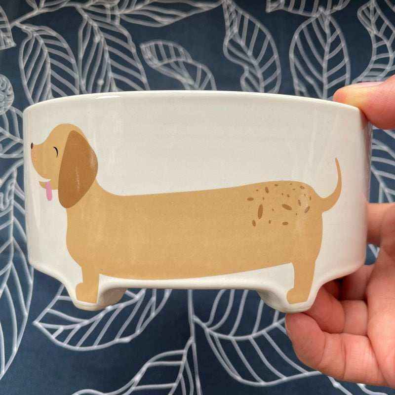 - Per cani: con un adorabile disegno di un bassotto felice.