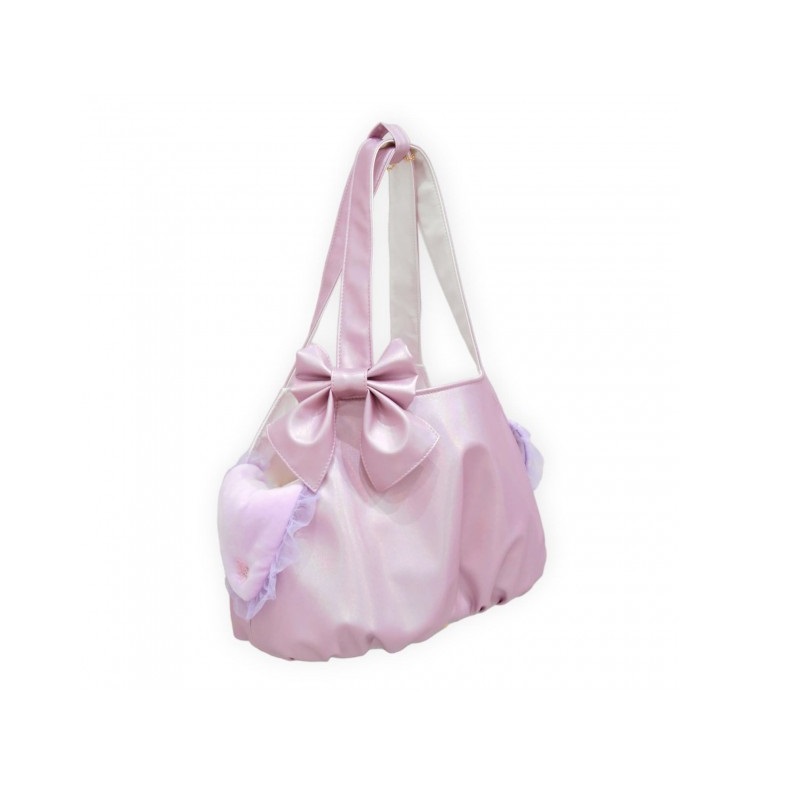 Borsa in ecopelle sugar. Rifiniture in oro. Accessoriata di: – Tappetino interno lavabile – Quattro tasche interne – Ganci di sicurezza interni – Un fiocco staccabile – Piedini per appoggiarla a terra M: L42 x P22 x H30 cm (2 ganci di sicurezza) S: L34 x P17 x H27 cm (1 gancio di sicurezza)