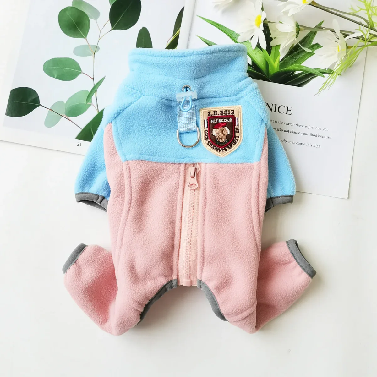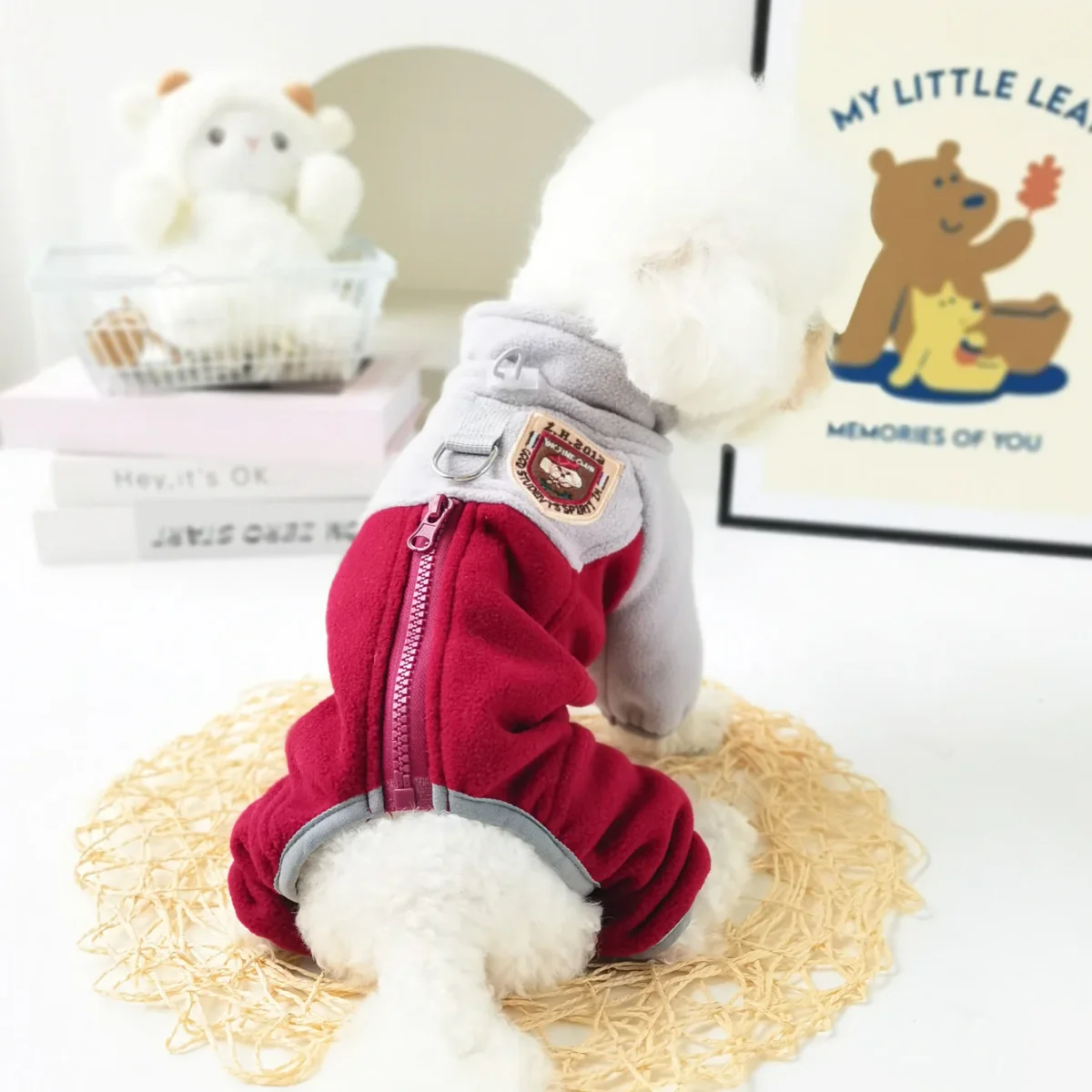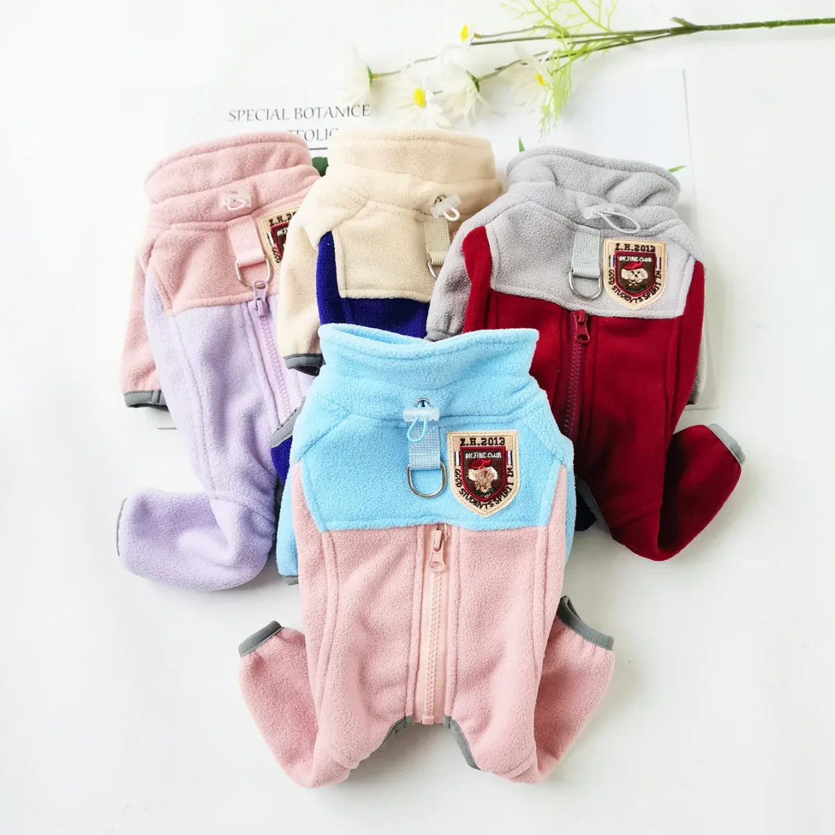 Color Block Fleece Zipped Dog Harness Jumpsuits
