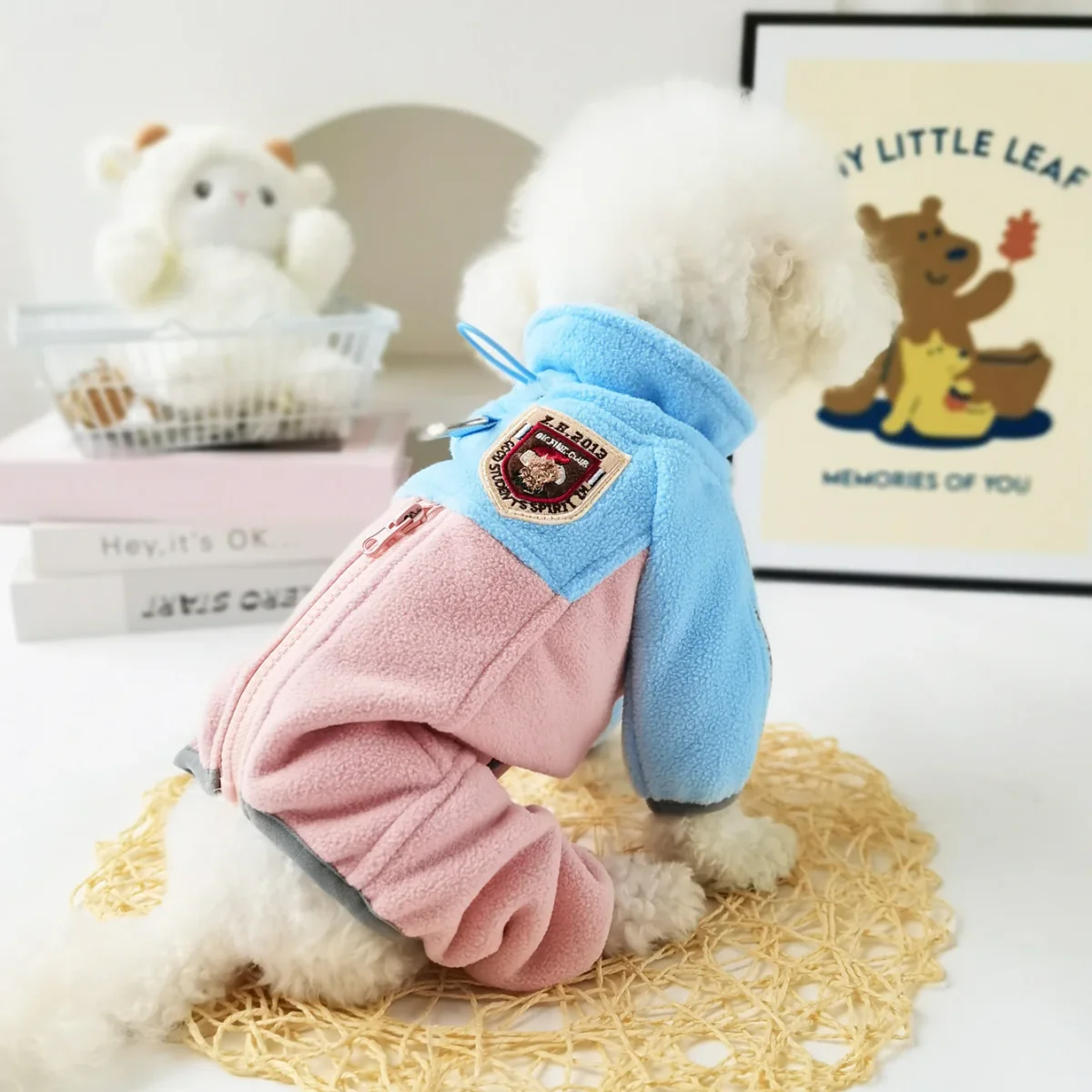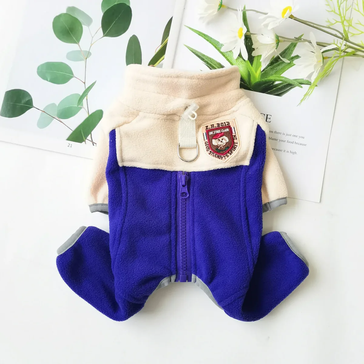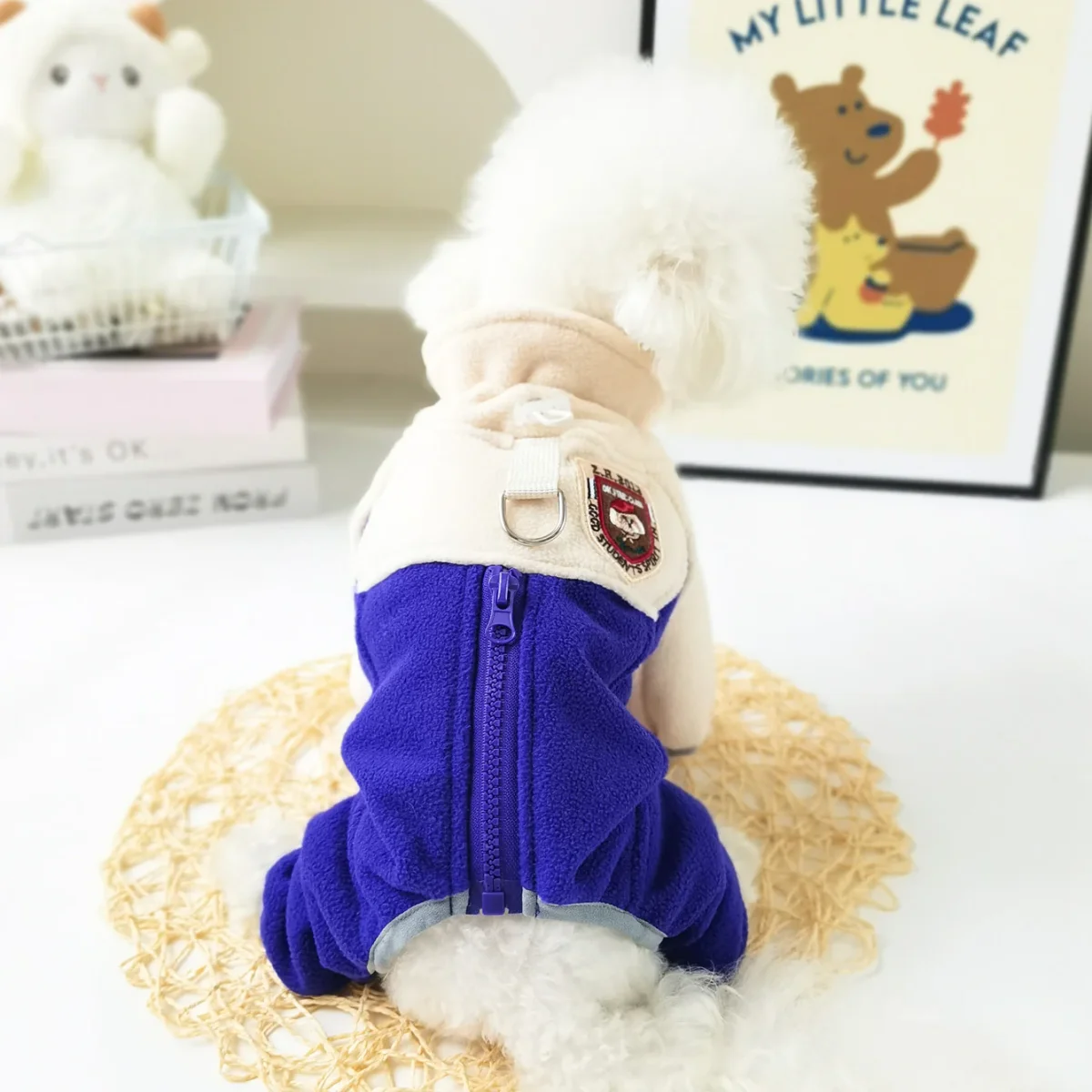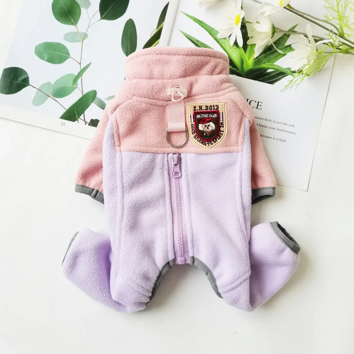 Color Block Fleece Zipped Dog Harness Jumpsuits