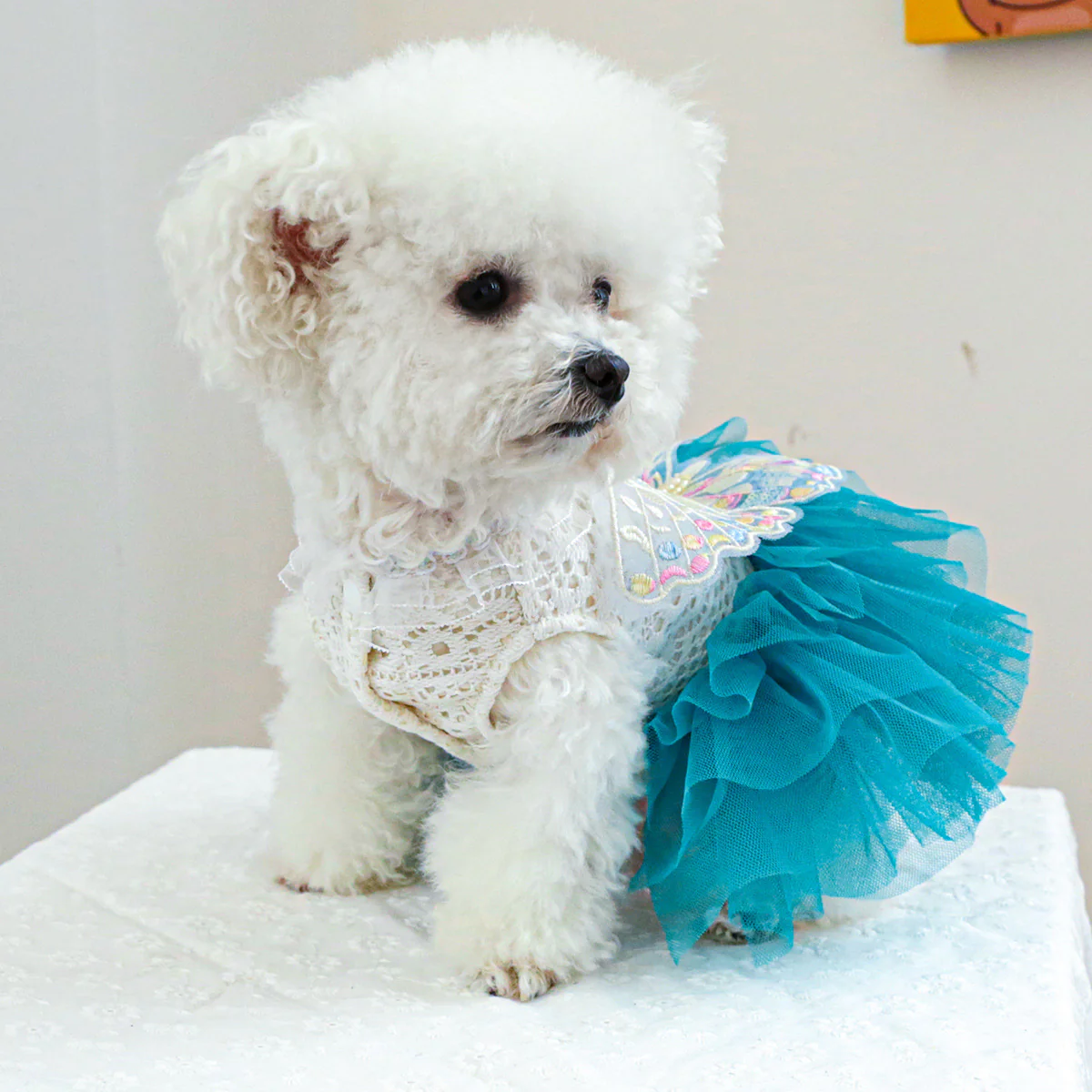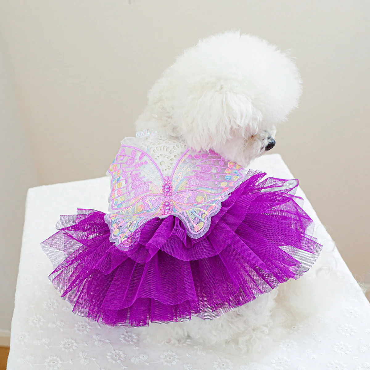 Colorful Butterfly Layered Dog Cat Lace Dress