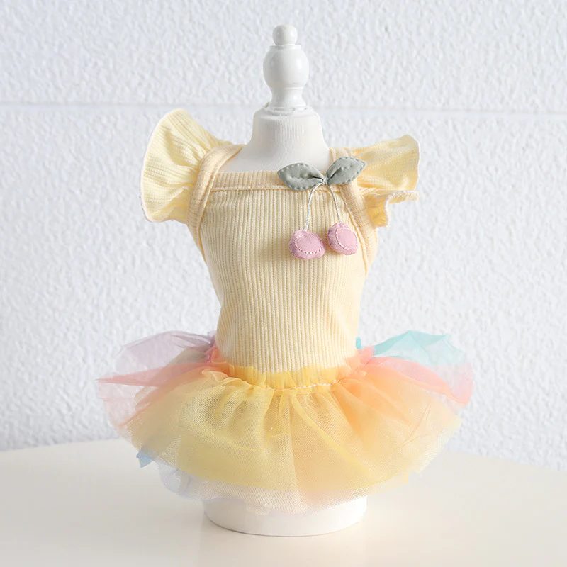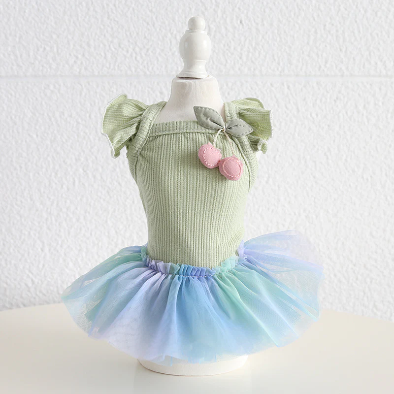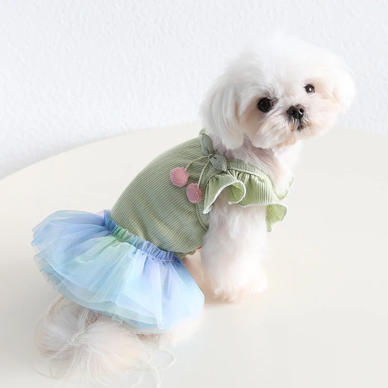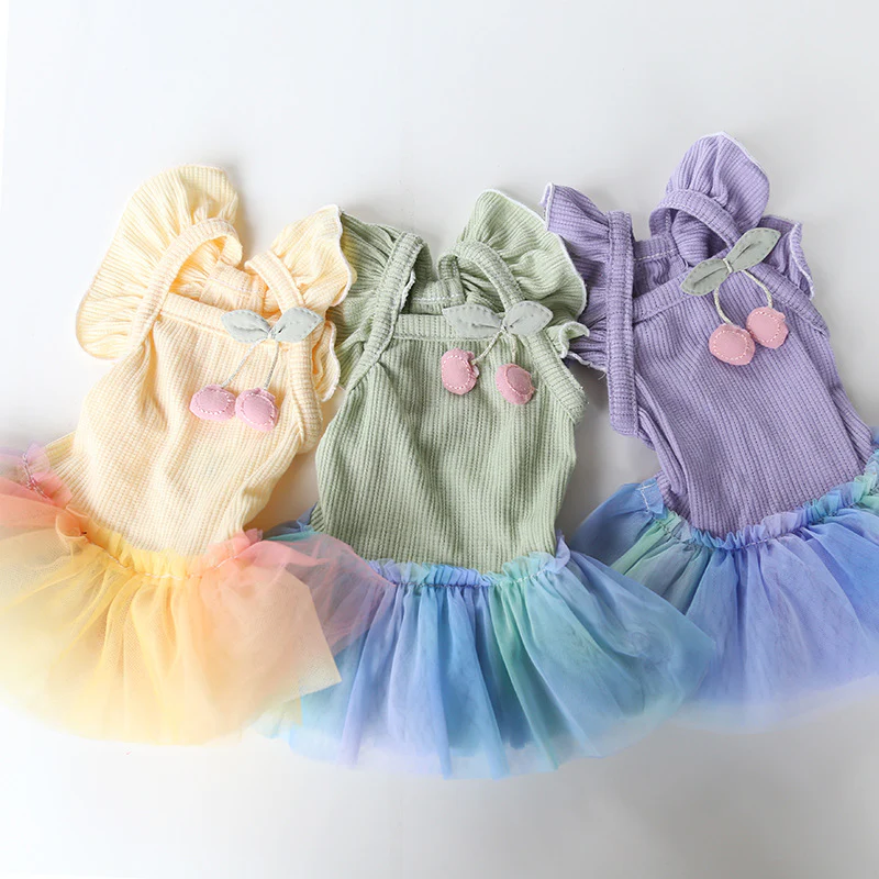 Type: Dress Style: SweetSeason: Spring/SummerPattern: LaceColor: Purple/Green/YellowSize: XS/S/M/L/XL Applicable breeds: Small Medium Dogs, like Yorkies ,Pug, Chihuahua, French Bulldog Package Included: Pet cloth*1 Note: It is manual measurement, there may be 1-3 cm error. And item color displayed in photos may be showing slightly different on your computer monitor since monitors are not calibrated same.