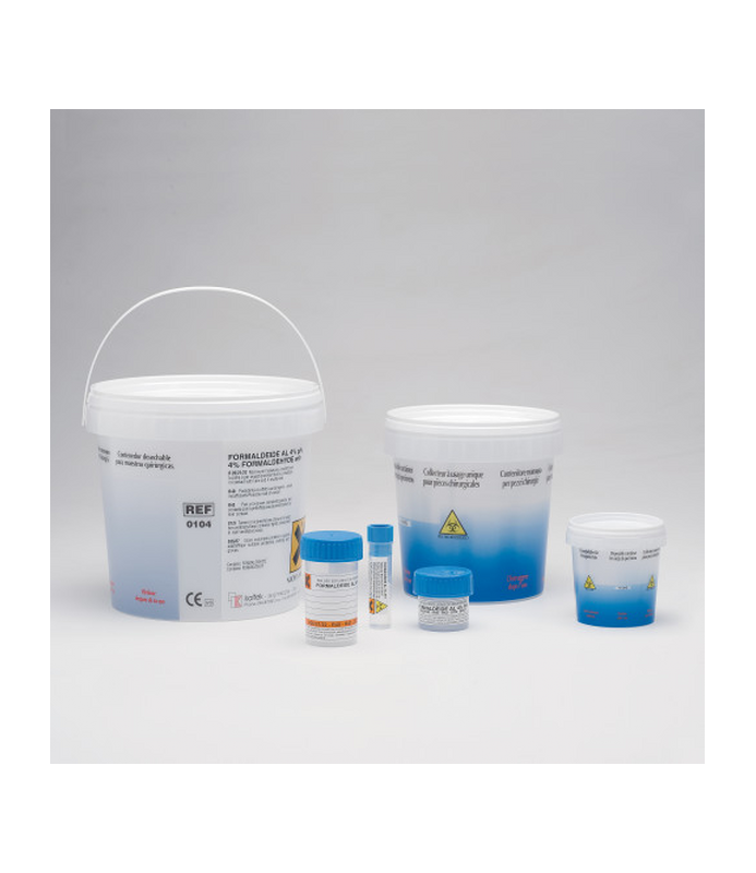 Contenitori monouso preriempiti di formaldeide tamponata al 4% , adatti al trasporto e alla conservazione di campioni biologici. Disponibili in vari formati: 60ml, 150ml, 250ml, 500ml, 1000ml.