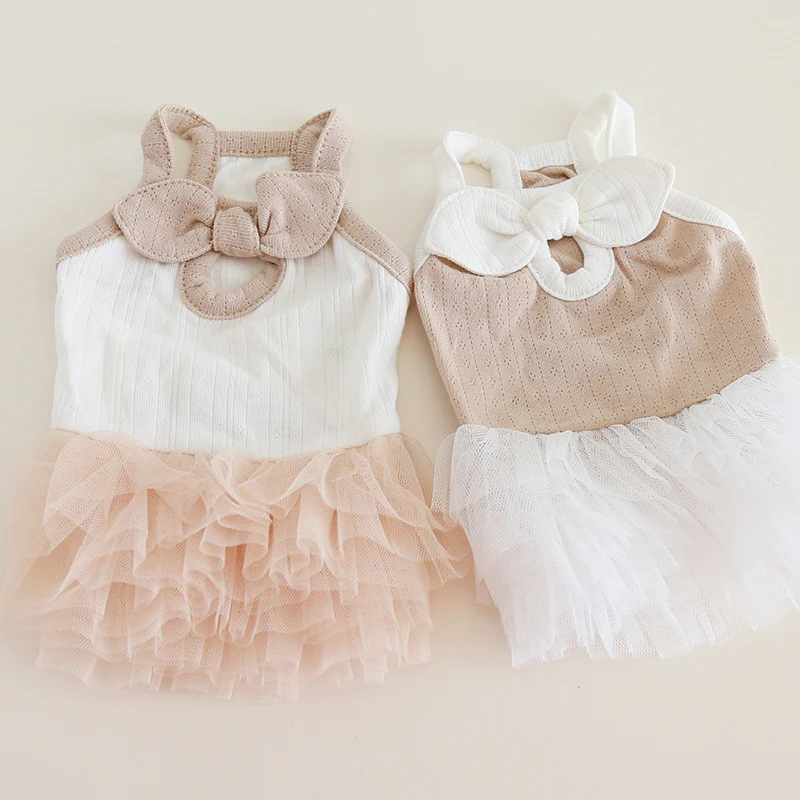 Type: Dress Style: SweetSeason: Spring/Summer/AutumnPattern: BowColor: White/KhakiSize: XS/S/M/L/XL Applicable breeds: Small Medium Dogs, like Yorkies ,Pug, Chihuahua, French Bulldog Package Included: Pet cloth*1 Note: It is manual measurement, there may be 1-3 cm error. And item color displayed in photos may be showing slightly different on your computer monitor since monitors are not calibrated same.