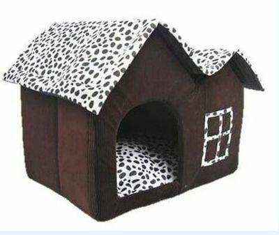 Regala al tuo cane o gatto un rifugio accogliente con la nostra cuccia a forma di casetta marrone con tetto maculato bianco e nero! Dotata di cuscino removibile per una pulizia facile, รจ perfetta per cani di taglia media e gatti.