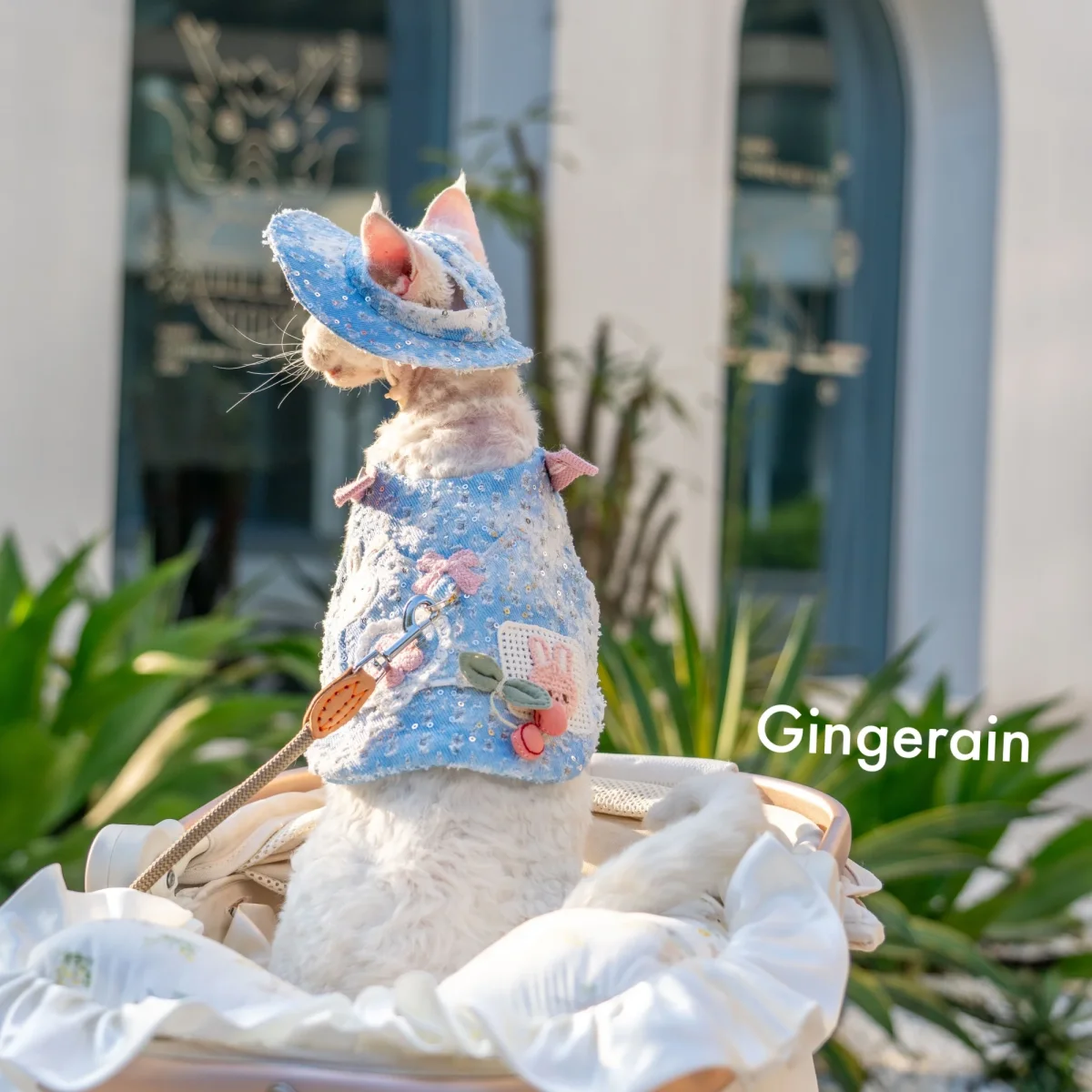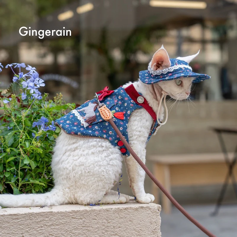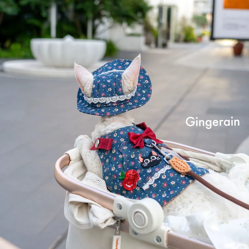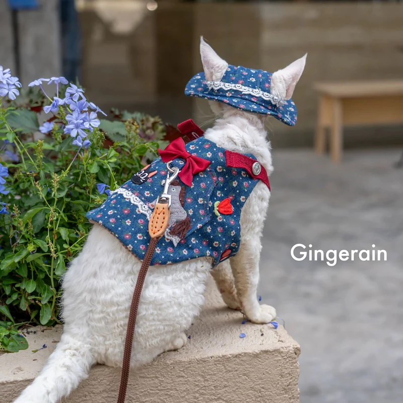Denim Floral Animal Decor Dog Harness Leash/Hat