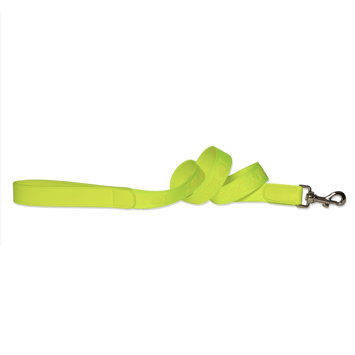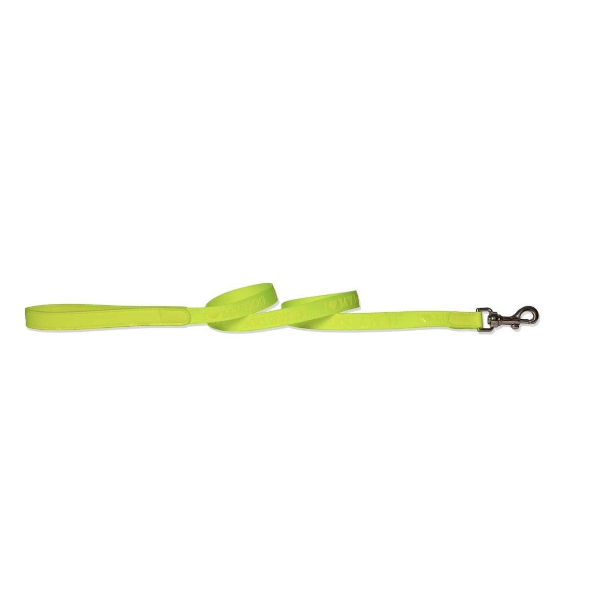 Guinzaglio in tessuto con dettagli in vera pelle e scritte in silicone.