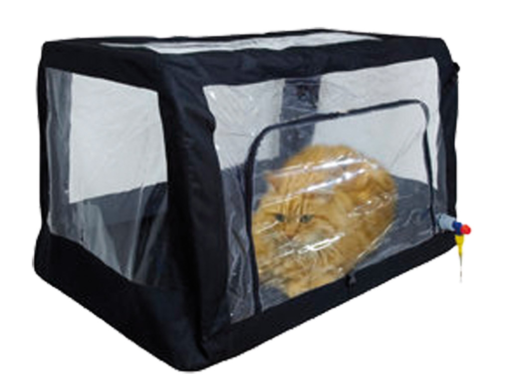 Gabbia pieghevole per piccoli animali per ossigenoterapia o riscaldamento/ raffreddamento (con panetti di gel o rilievo di calore elettrico). Consente l’uso di farmaci nebulizzati e camera di anestetico. Può essere inserita all’interno di gabbie in acciaio inox. Fornita con kit di accessori. Misure: 45x35x35cm; 60x45x45cm