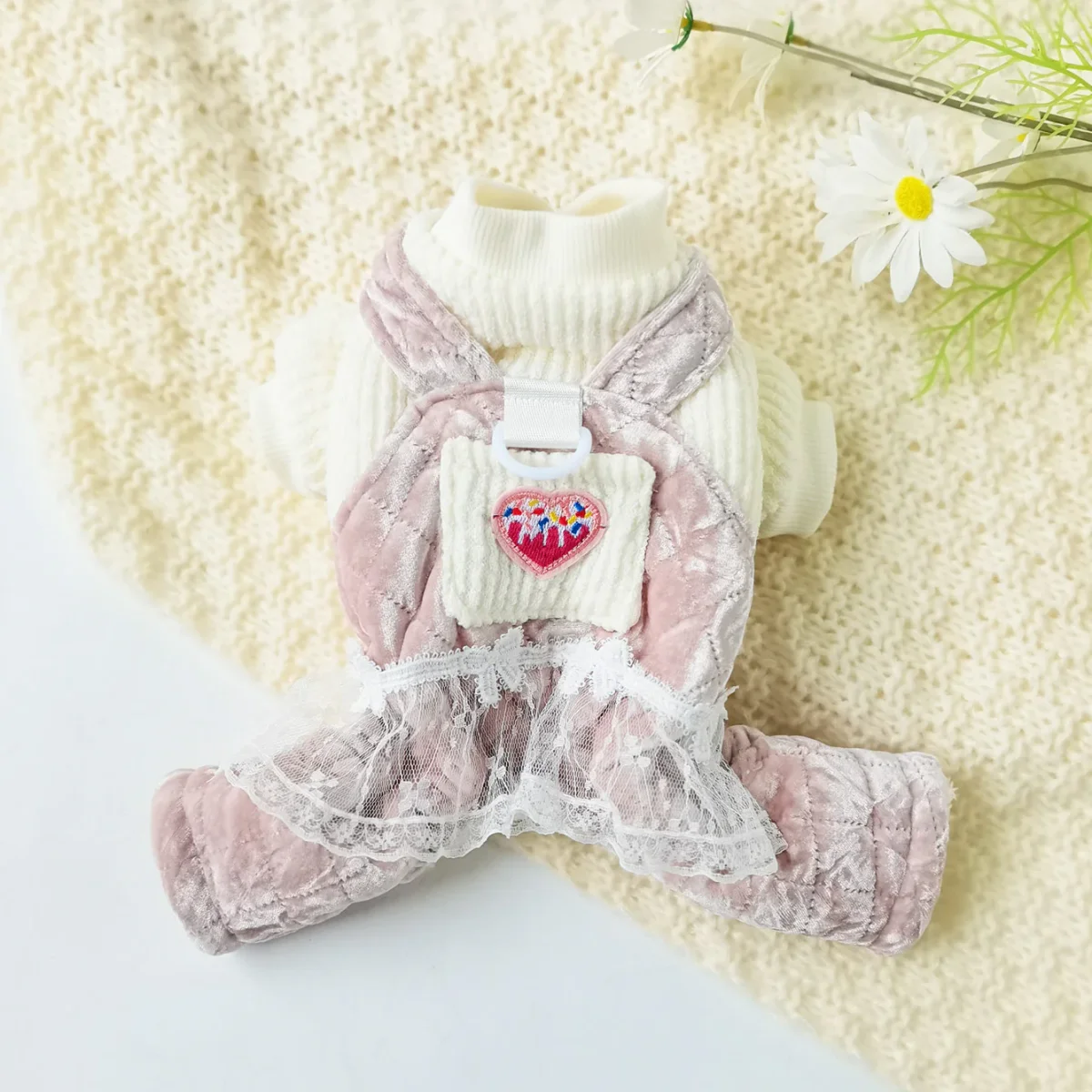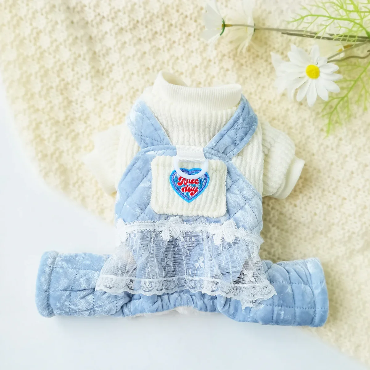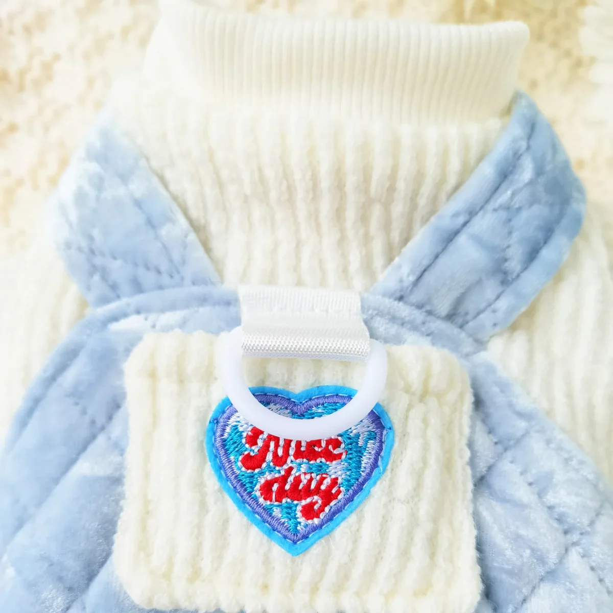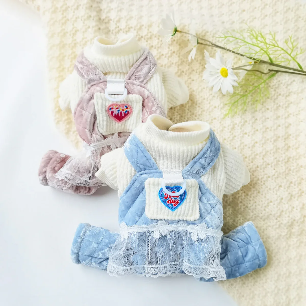 Type: Jumpsuits Style: SweetSeason: Autumn/WinterPattern: HeartColor: Blue/PinkSize: XS/S/M/L/XL Applicable breeds: Small Medium Dogs, like Yorkies ,Pug, Chihuahua, French Bulldog Package Included: Pet cloth*1 Note: It is manual measurement, there may be 1-3 cm error. And item color displayed in photos may be showing slightly different on your computer monitor since monitors are not calibrated same.