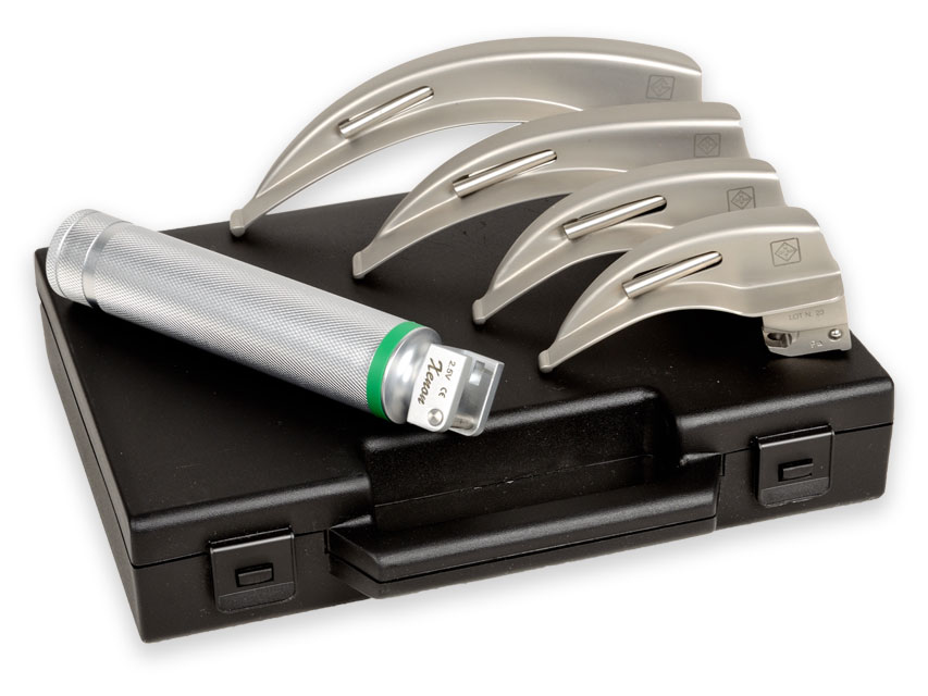 – laringoscopio F.O. che offre una luce fredda brillante