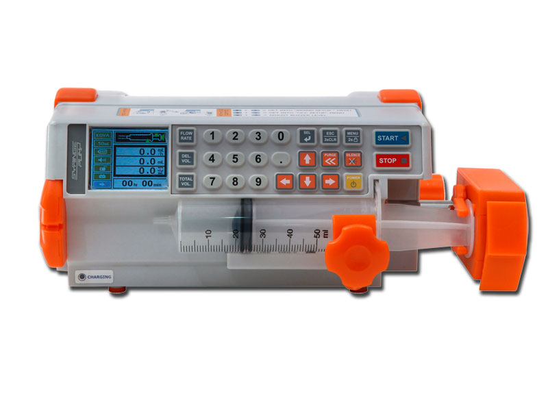 Pompa per infusione con display LCD, gli errori e el situazioni di emergenza vengono notificate con una luce LED e un segnale acustico, compatibili con le principali marche da siringhe. Marchio CE. Misura 22X13X10,8(h)cm.