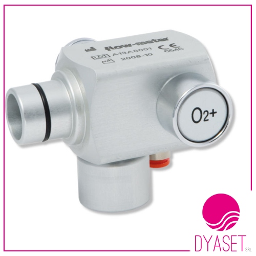 Dispositivo adatto per l’erogazione rapida di ossigeno direttamente all’uscita della miscela dei gas alla fine del ciruito di anestesia. La struttura in alluminio anodizzato comprende essenzialmente la connessione di uscita arricchita di O2, il raccordo di alimentazione dell’O2 ed il pulsante di erogazione.