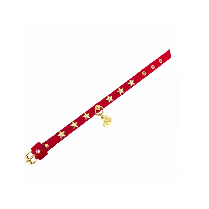 Collare in morbida ecopelle con rivetti di cristalli a stelle. Tutte le minuterie metalliche sono in oro nichel free. 100% Made in Italy