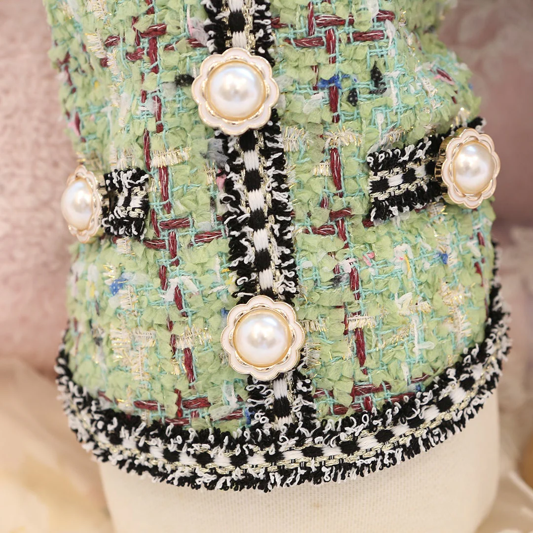 Sweet Pearl Plaid Dog Cat Harness Dress Jacket