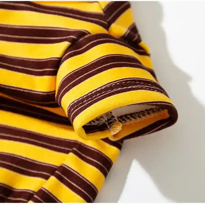 ๐Ÿป Righe Giallo-Marrone + Patch Orso: Look caldo e accogliente con adorabile orsetto