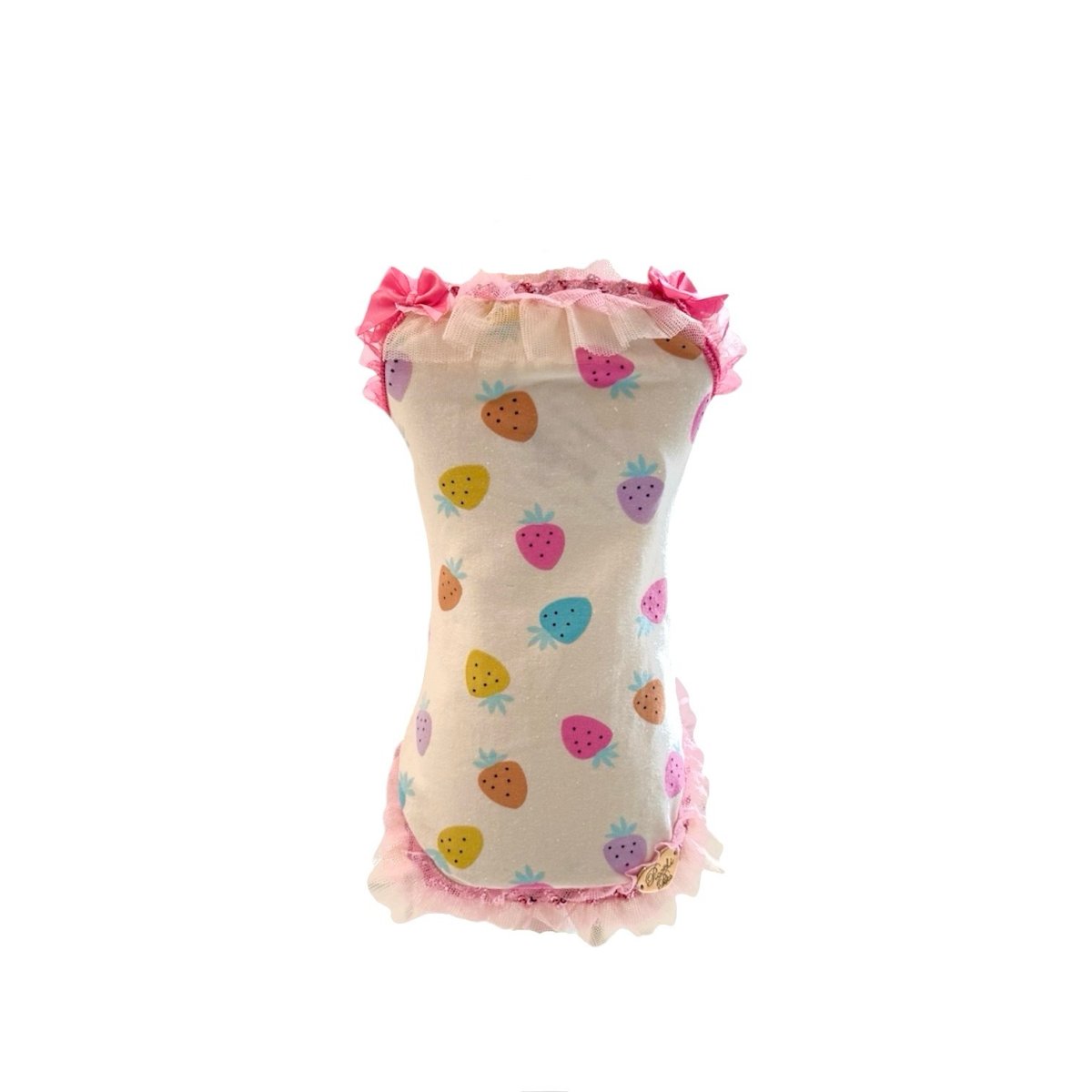 Regala al tuo amico a quattro zampe un look unico con questa adorabile t-shirt con le fragoline! Realizzata in morbido cotone, assicura comfort e traspirabilità in ogni stagione. La stampa con le fragoline aggiunge un tocco di dolcezza e simpatia, perfetto per i cuccioli che amano farsi notare.