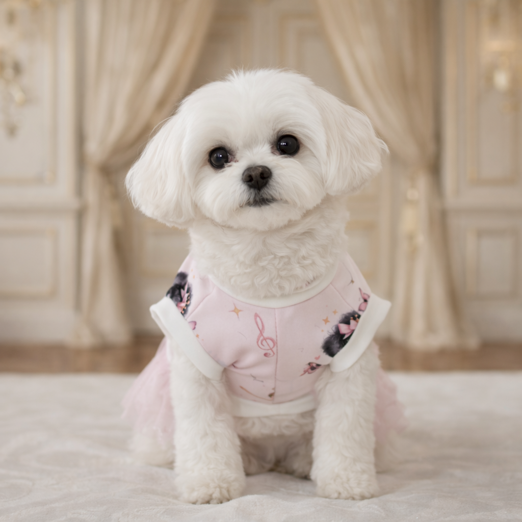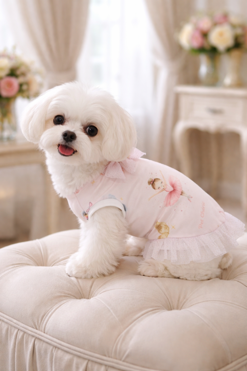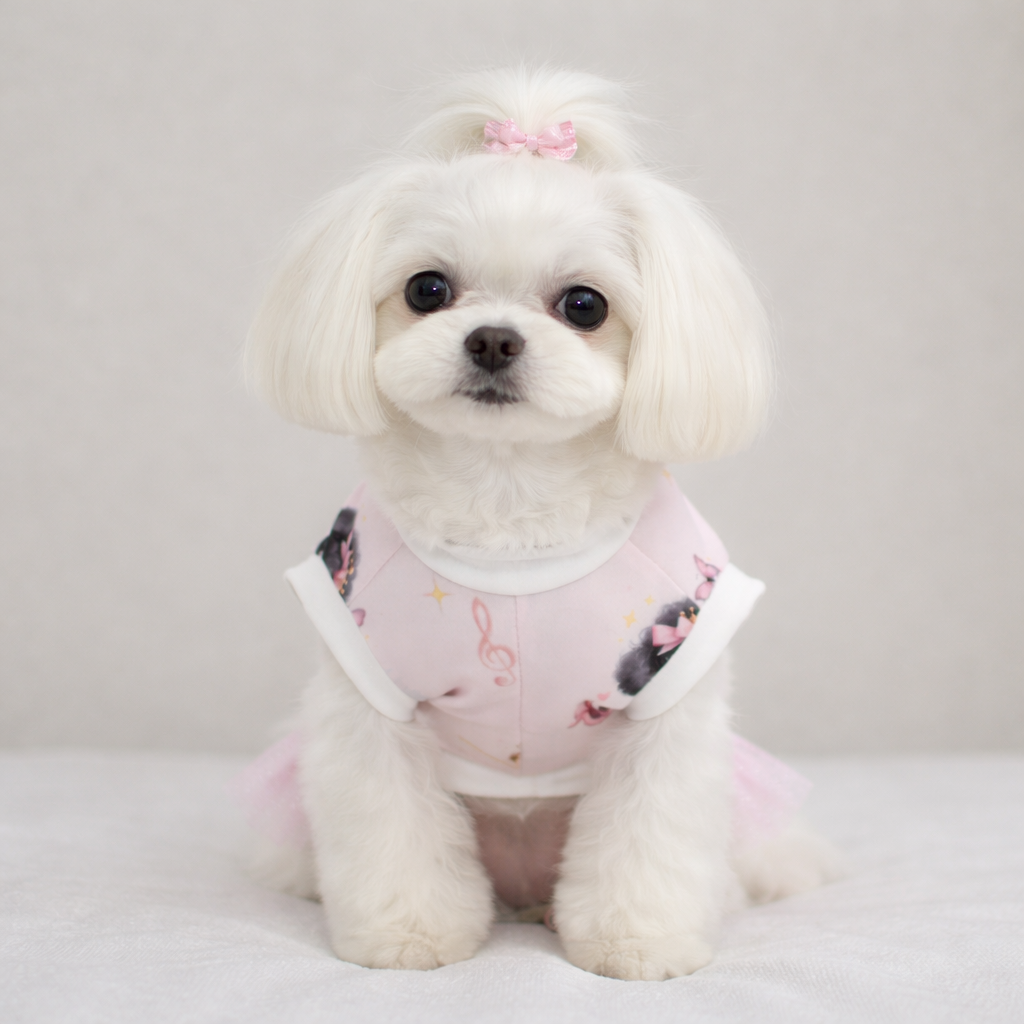 Realizzata in jersey manopesca, assicura comfort e traspirabilità in ogni stagione. La stampa con ballerine, aggiunge un tocco dolce e delicato, perfetto per i cuccioli che amano farsi notare.