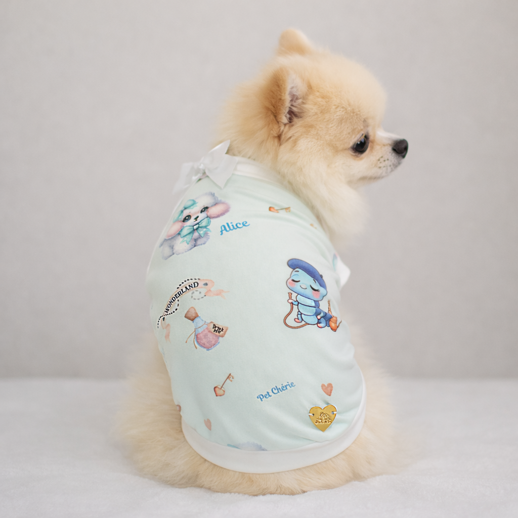Realizzata in jersey manopesca, assicura comfort e traspirabilità in ogni stagione. Le stampe grafiche di “Alice in Wonderland”, aggiungono un tocco divertente e simpatico, perfetto per i cuccioli che amano farsi notare.