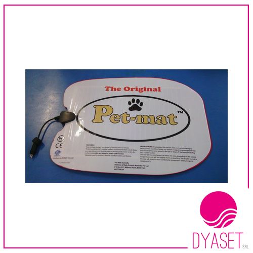 Tappeto riscaldante per animali, impermeabile con federa lavabile, funzionamento a 12V, temperatura non regolabile (max 40°C). Misure disponibili: 38x27cm e 54x38cm.