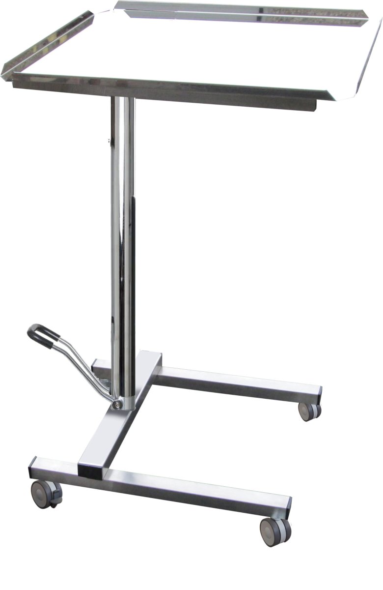 Tavolo servitore porta bisturi in acciaio inox regolabile in altezza. Su ruote, di cui due frenanti. Dimensioni : L60xP40xHmax113xHmin80 cm