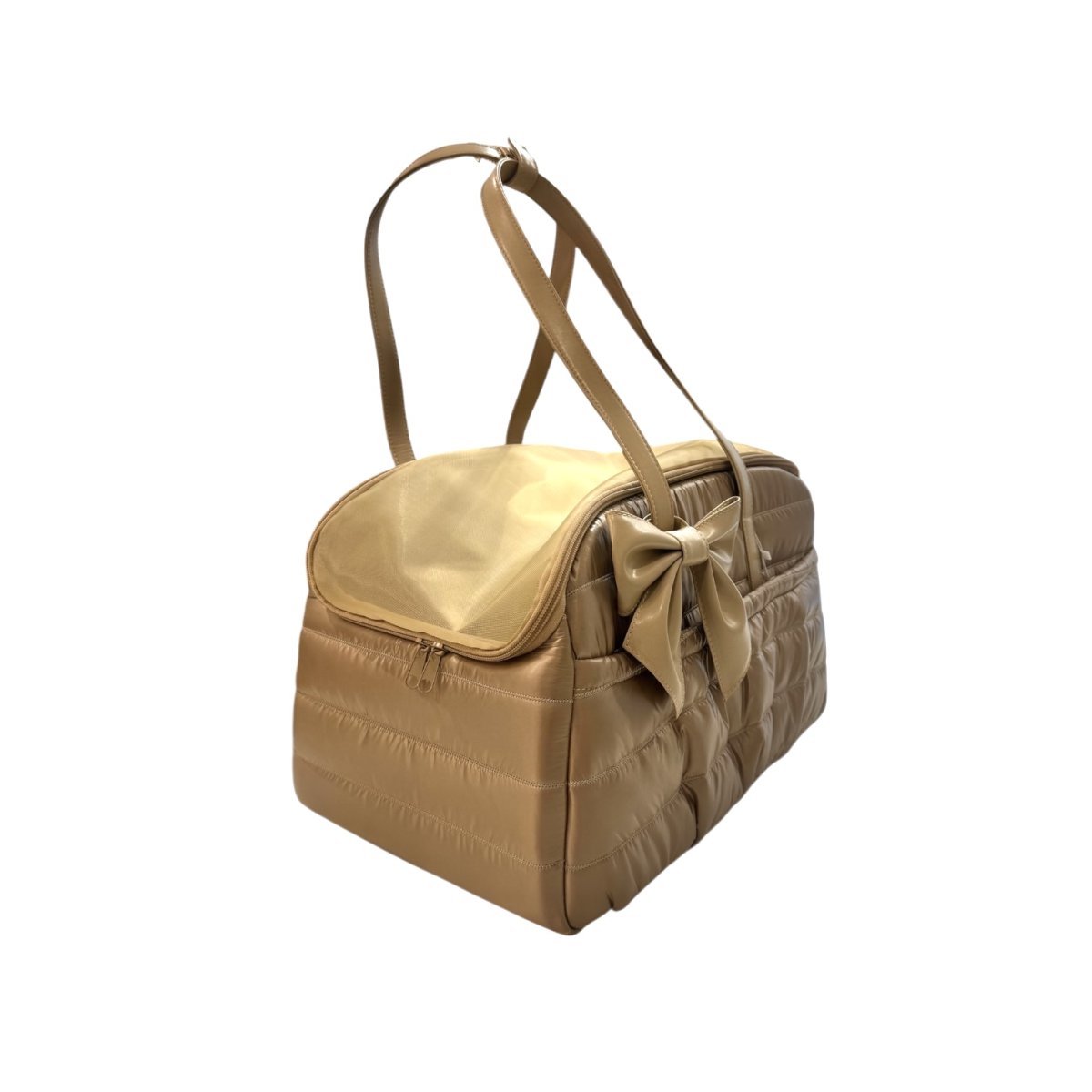 Trasportino da viaggio semi-rigido in ecopelle trapuntato.