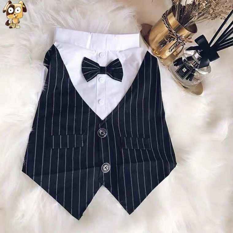 Un completino per cani elegantissimo e adatto a qualsiasi cerimonia elegante fino ai matrimoni! Questo vestito per cani è ben rifinito e curato nei dettagli, il papillon è sia nel dorso che sul collo in modo da poter risultare perfetto ad ogni scatto.