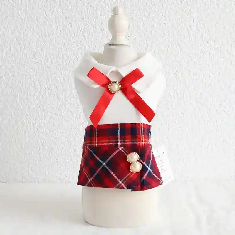 Vestito per cani “Perla” con fiocchetto e gonnellina tartan | DogModa