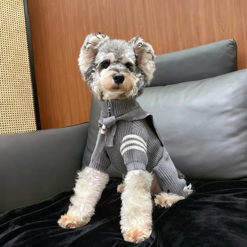 Warm Striped Knitted Dog Jumpsuits Cape
