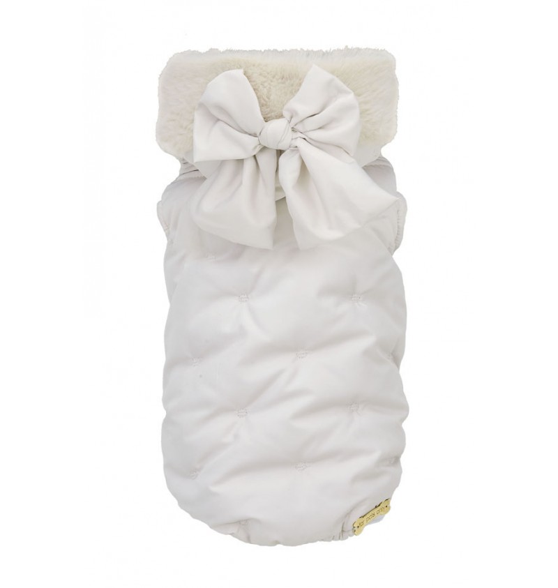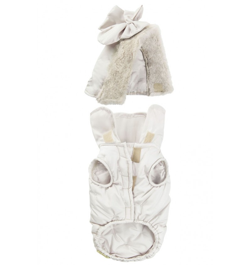 Il cappuccio e il fiocco si posso togliere e la comoda apertura con il velcro vi permette di indossarlo con facilità.