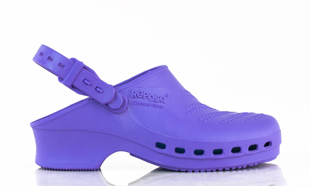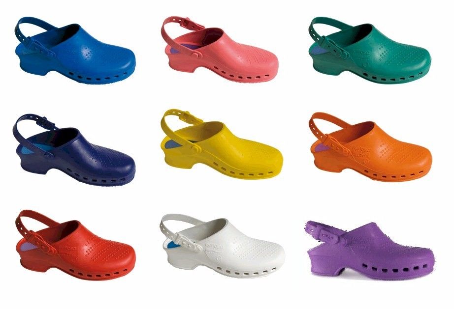Zoccoli in gomma termoplastica hi-tech, suola certificata antiscivolo e antibatterica, laccetto regolabile e ribaltabile, aggancio brevettato, alloggiamento sottotacco per microchip, finestre laterali per l’aerazione del piede, privi di lattice, sterilizzabili in autoclave a 134°. Colore rosso. Misura 40/41.