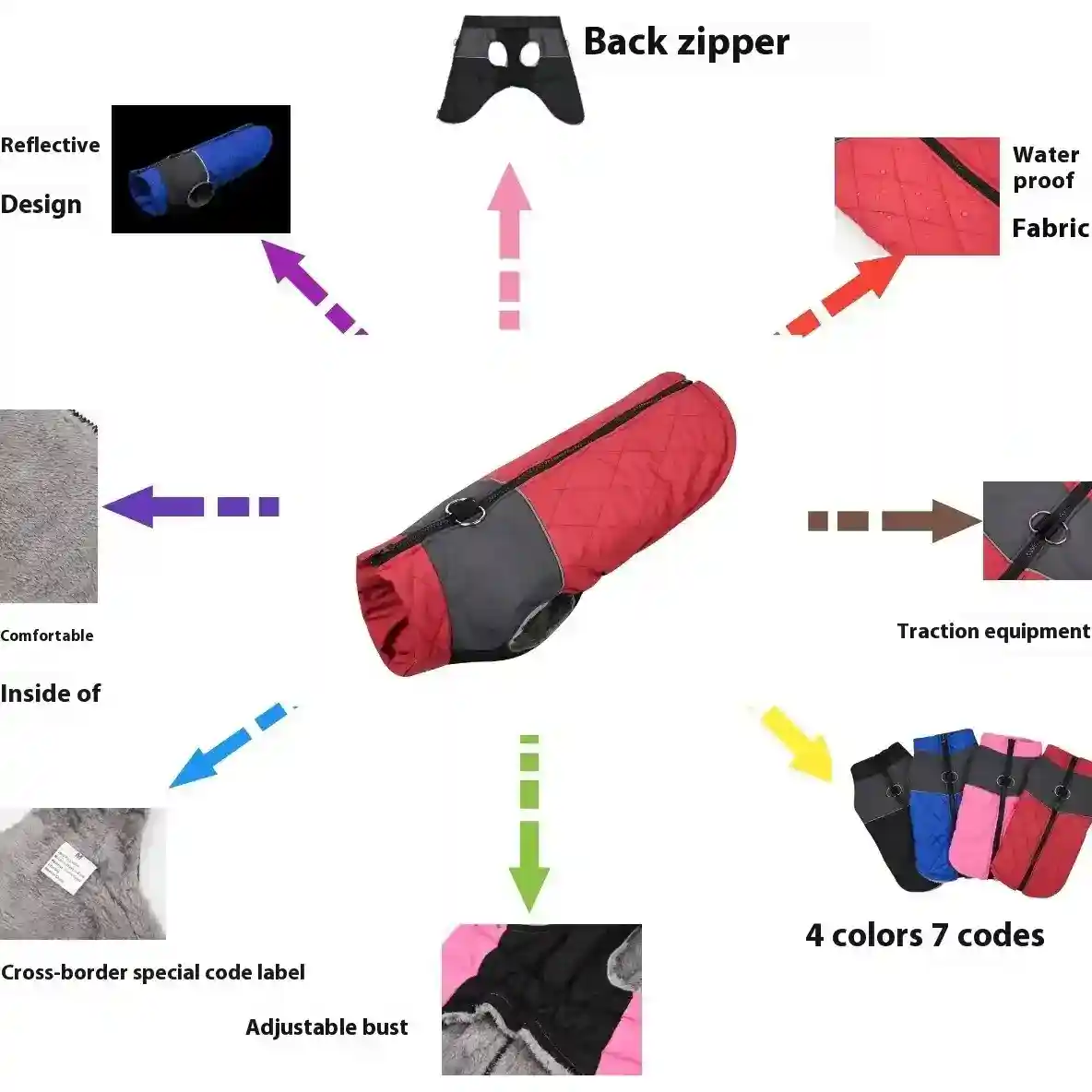 Il cappotto per cani “Alvin” è progettato per offrire protezione dal freddo e massima praticità. Grazie alla chiusura a zip sul dorso, è facile da indossare e togliere, mentre l’anello integrato per il guinzaglio elimina la necessità di una pettorina aggiuntiva. Il design elasticizzato sull’addome assicura una vestibilità perfetta, adattandosi alle forme del tuo pet senza stringere.