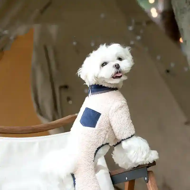 Regala al tuo amico a quattro zampe il massimo comfort con il pigiamino Parfum! Tutina intera in morbidissimo pile bianco con dettagli colorati (blu, giallo o rosso) sul colletto e una pratica taschina decorativa sul dorso. La zip sulla schiena rende facilissimo indossarlo e toglierlo, mentre la copertura a quattro zampe garantisce calore totale.