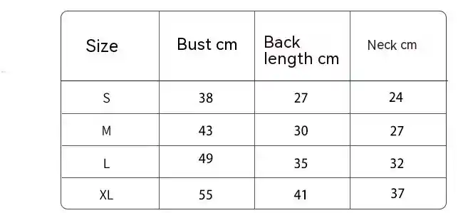 | S | 27 | 38 | 24 | 2-3 | Chihuahua, Yorkshire, Pinscher, Maltese |